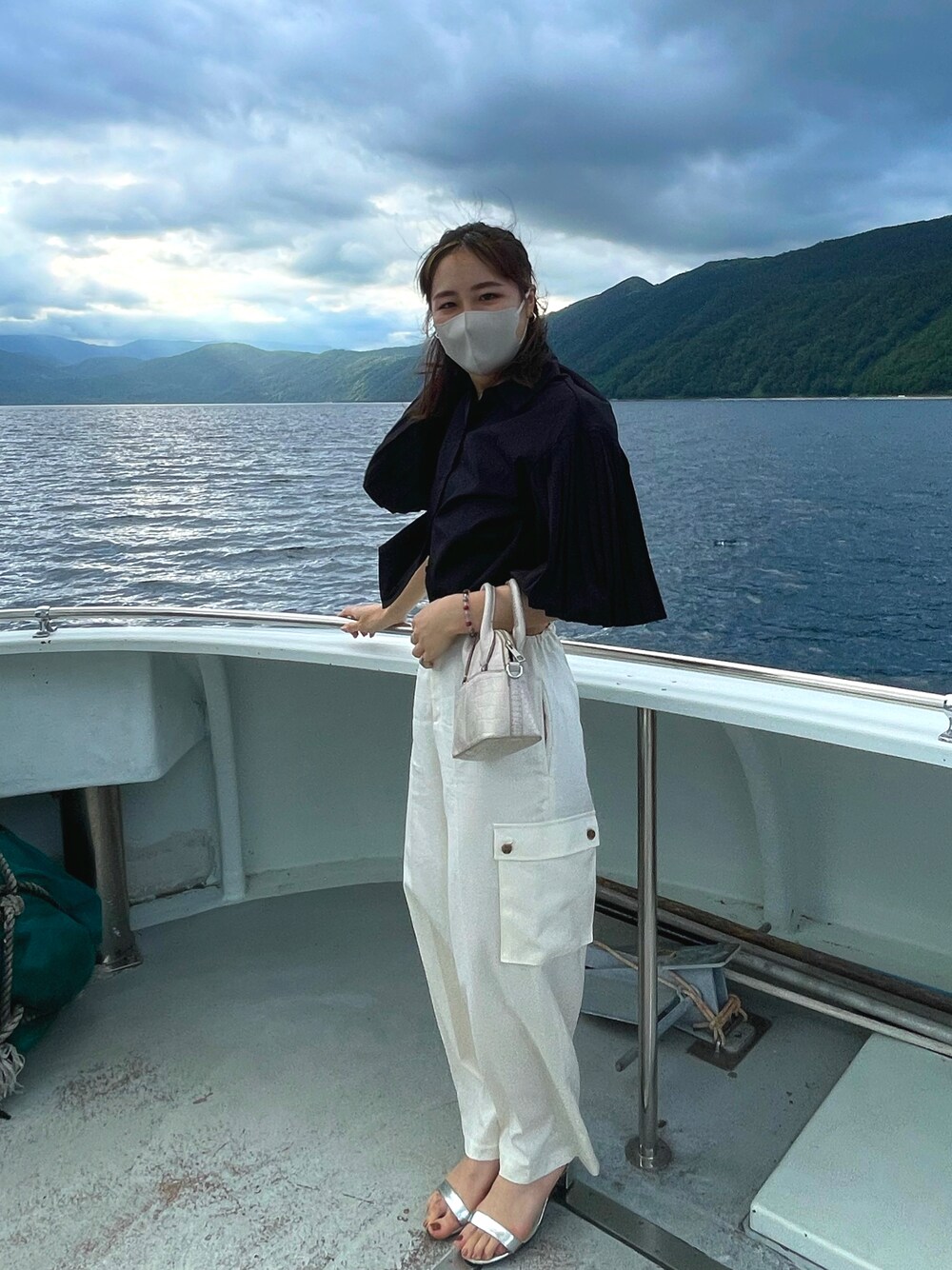 支笏湖コーデ🌊新しいお洋服でテンション⤴︎︎︎ このパンツウエストのところチラッと見えて可愛いんよ👖💕