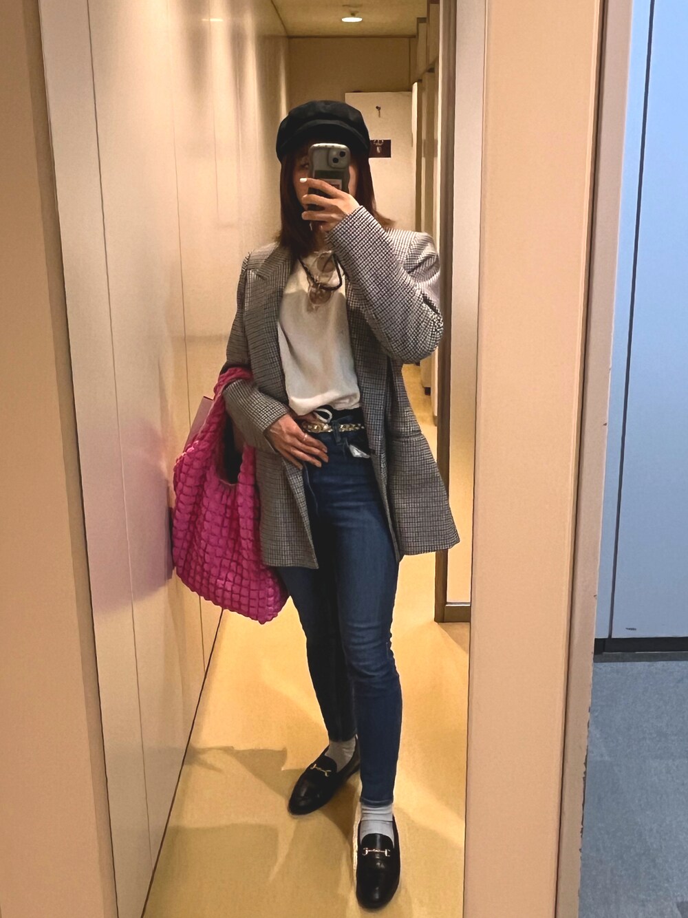 ラフーなトップスにジャケットでしめたコーデ🕺
