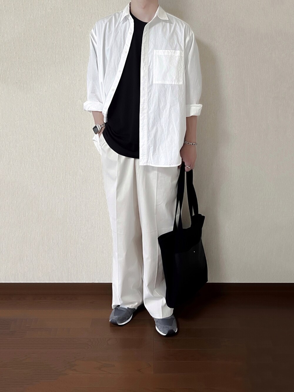 すずしょーのシャツ/ブラウス「オーバーサイズ マルチパターン/ファブリック レギュラーカラーL/Sシャツ EMMA CLOTHES」を使ったコーディネート