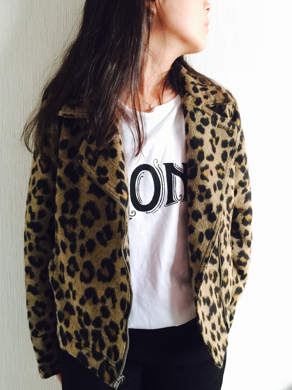 こんばんは 今日も1日寒いですね((((;゚Д゚))))))) 今日は、シンプルにTシャツ×デニムに、レオパード柄のジャケット!