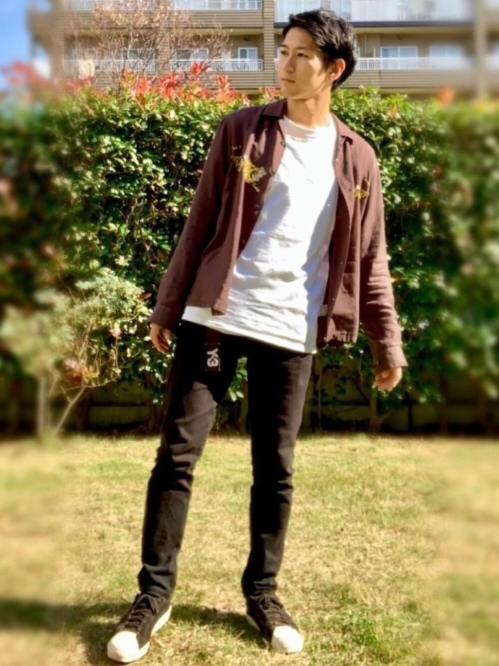 開襟シャツスタイル ご覧いただきありがとうございます 昼間は日が照って暖かかったので、少し薄着でお散歩です championのロンTにJohn undercover の開襟シャツを浅く羽織り、抜け感があるコーデにしました yohji yamamotoのスニーカーは、adidasのスーパースターが元になっているので歩きやすく、ちょいとしたお出かけに最適です ぜひ参考にしてみてください