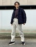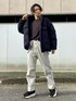 ピアス/garni ダウンジャケット/graphpaper × zanter ロンT/Y-3 ベルト/lad musician リング/FENDI パンツ/needles × smith's スニーカー/marni