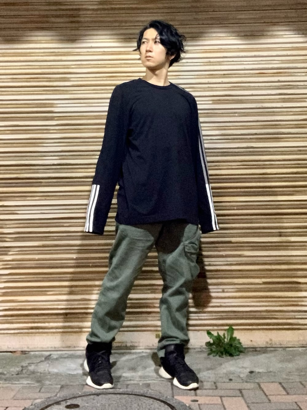 ピアス/celine ロンT/Y-3 パンツ/stone island スニーカー/rick owens × adidas