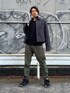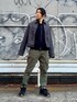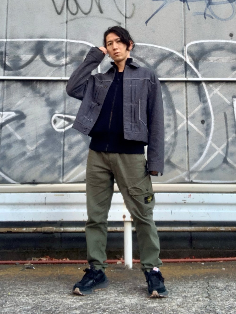 ピアス/celine ジャケット/maison margiela ドライバーズニット/yohji yamamoto パンツ/stone island スニーカー/sacai × nike
