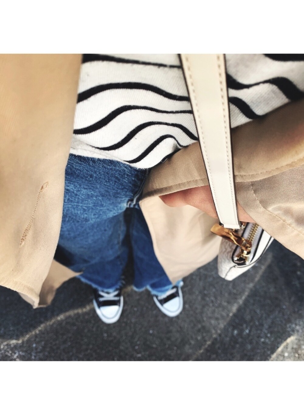スーパーへ向かう際のコーデです🧥 今日はいいお天気でした☀︎