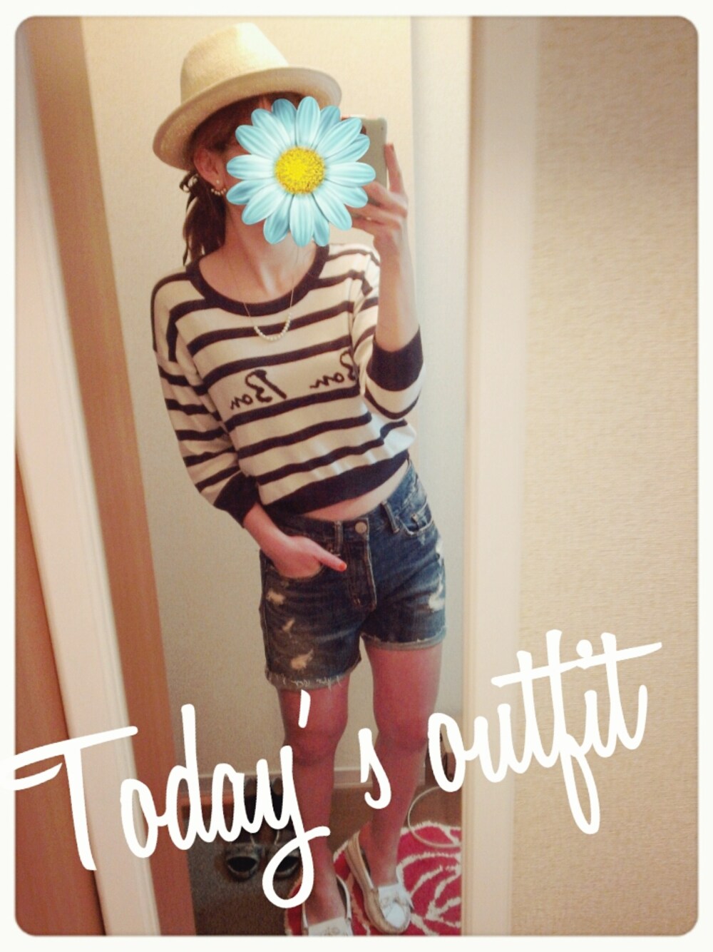 トップス:TOPSHOP ボトム:Antgage ハット:オールドネイビー シューズ:ミネトンカ もう少し暖かくなったらしたいコーデ♪