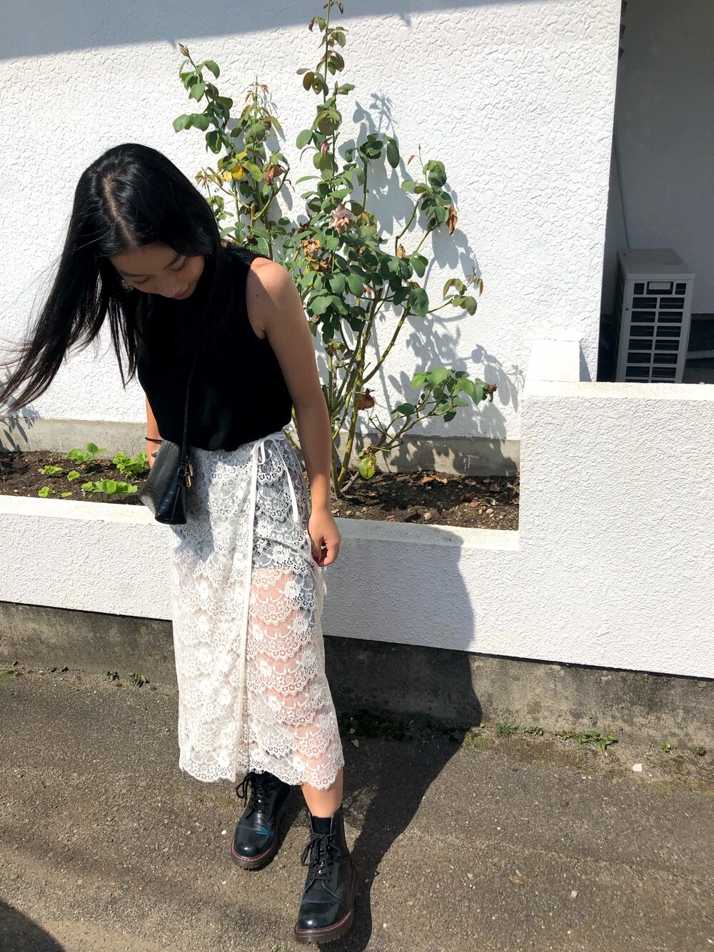 ちゃんあたのカーディガン/ボレロ「レースガウン+ボーダータンクセット」を使ったコーディネート