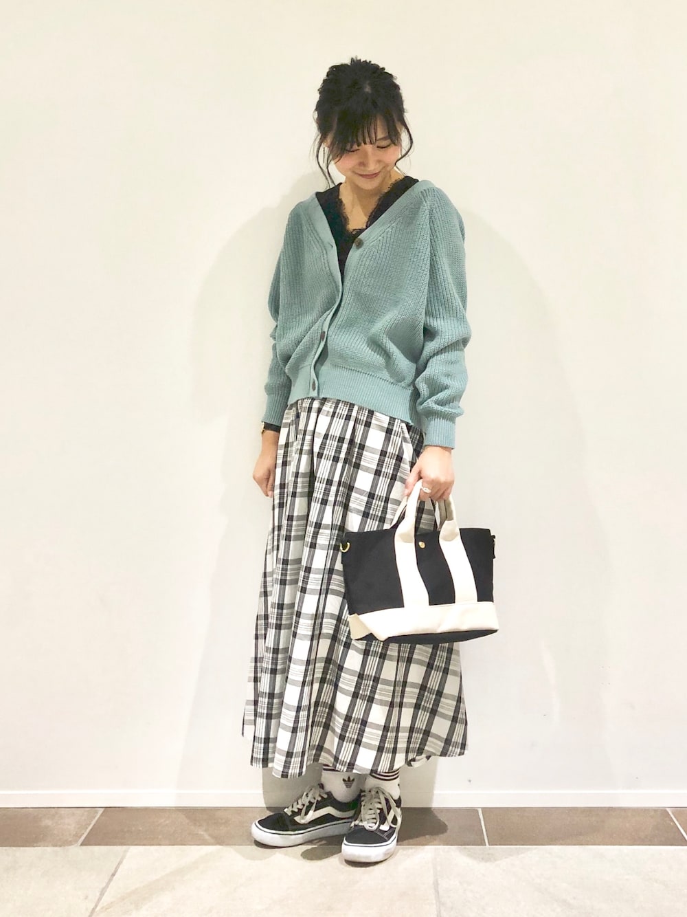 アヤ.のカーディガン/ボレロ「片畦Vネックラグランニットカーディガン」を使ったコーディネート