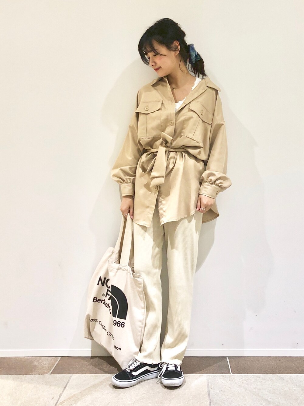 GreenParksで一目惚れして購入したコーディネート ベージュのワントーンでまとめてみました♥︎ 本当はスニーカーもベージュにしたかったですが持っていないので… (ウエストのリボンが曲がっているのは気にしないでください笑)