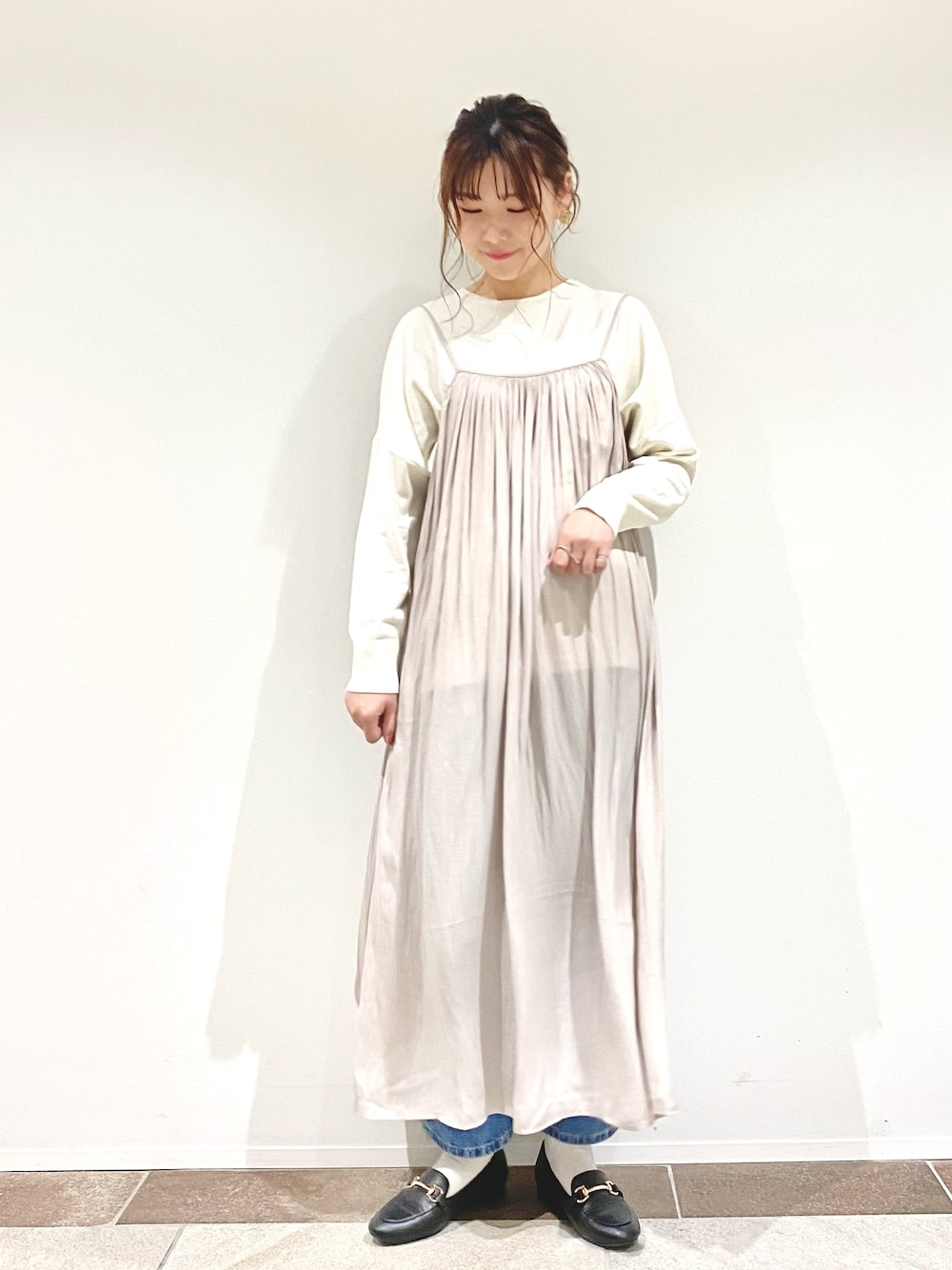 ピンクベージュのキャミワンピ可愛い〜〜!!♥︎
