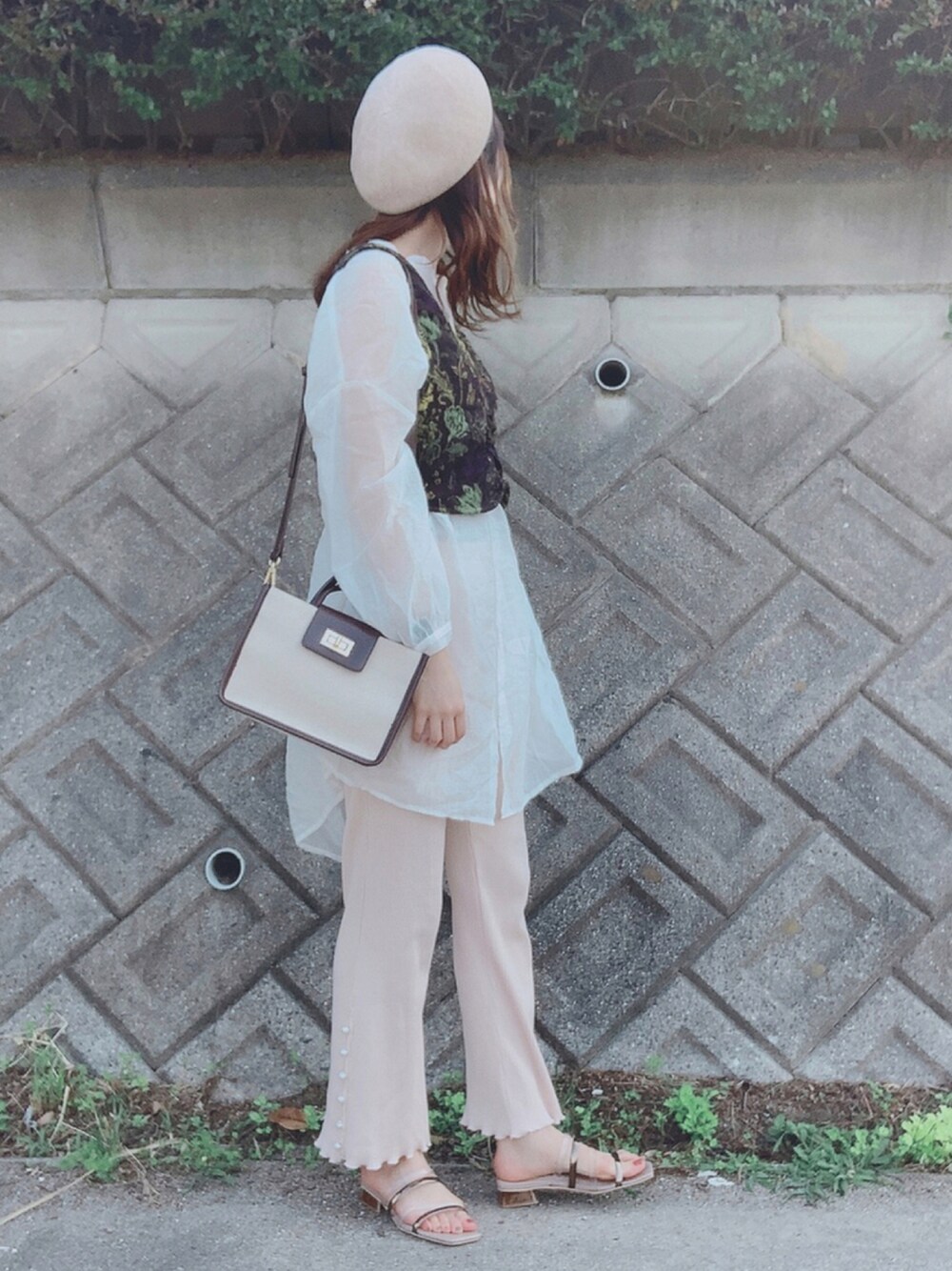 シアーシャツ🌱 淡色コーデです🐰💓 最近ベージュばっかり、、🤭