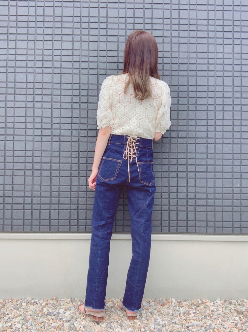 chicoコーデ🌱 大変お久しぶりの更新です🥺🥺 レーストップスもバックリボンのデニムもどタイプ🐰💓
