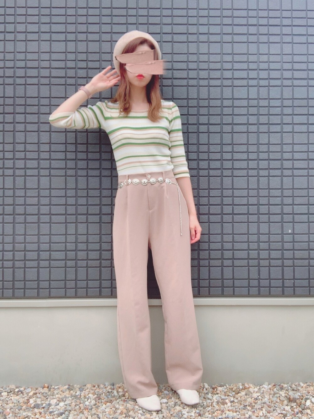 uichan❁⃘*.゚のニット/セーター「マルチボーダー7分袖チビニット」を使ったコーディネート