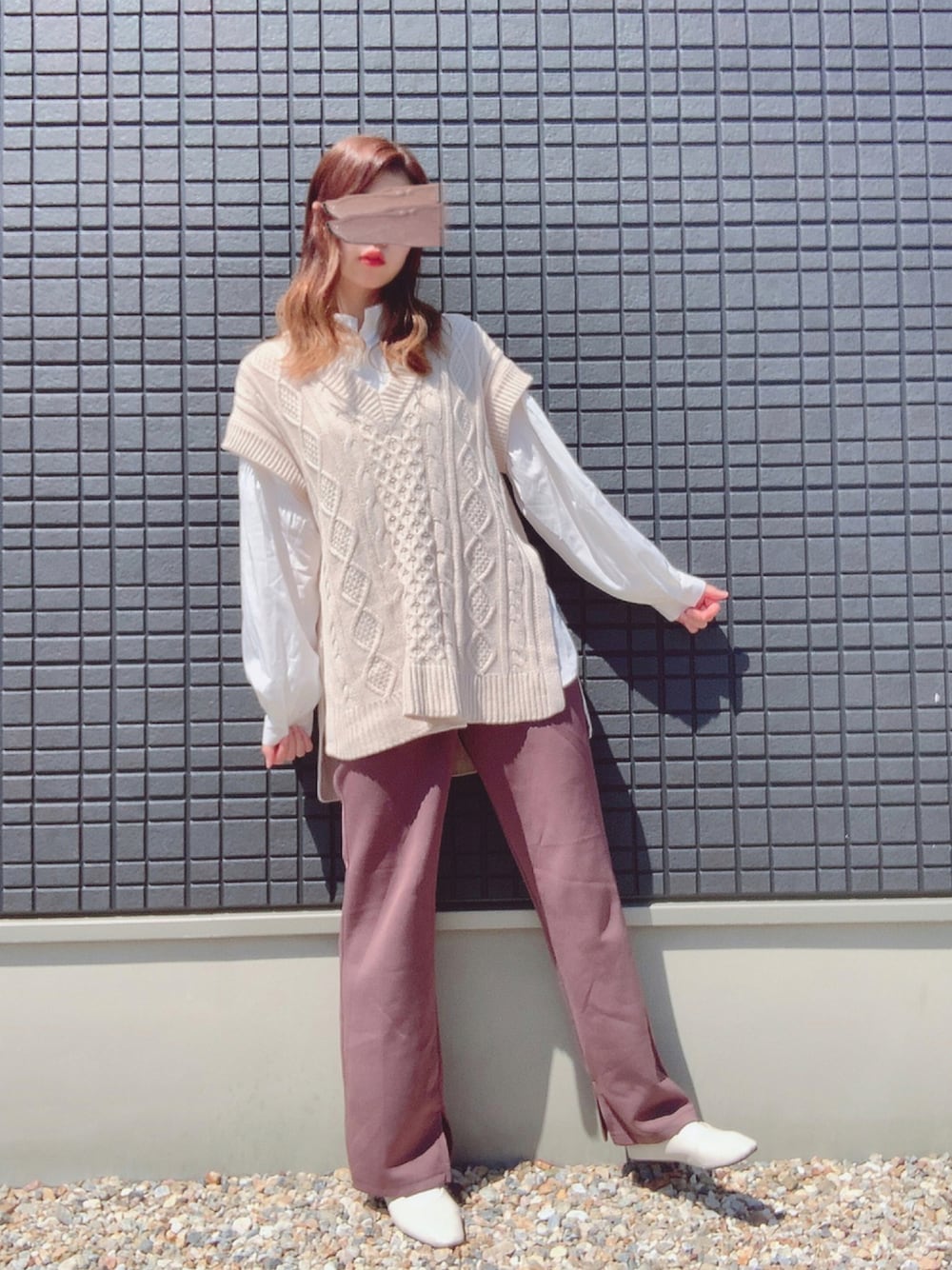 ニットベスト🍁 白シャツ×ベストは安定☺️ Kastaneのジャージスラックスも 去年から大変お世話になってます♡