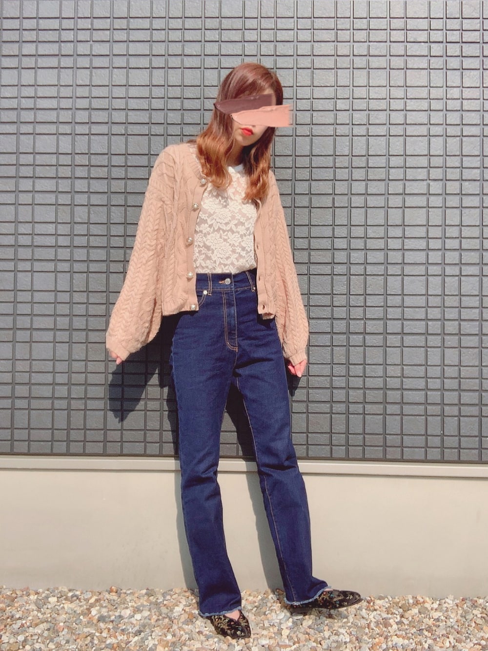 カーディガン🍁 デニムだけどレーストップスで カジュアルになりすぎないように🐰💓