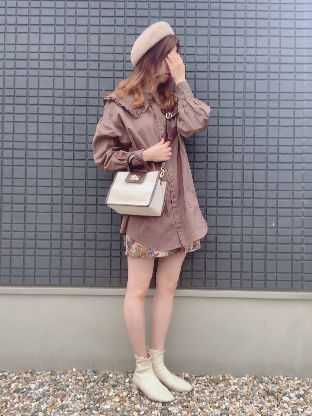 ✼••┈┈••✼••┈┈••✼••┈┈••✼••┈┈••✼ autumncolor code ✼••┈┈••✼••┈┈••✼••┈┈••✼••┈┈••✼ お久しぶりにおんなのこコーデ⸜♡⸝ フリルのシャツに花柄ミニスカート を秋カラーでまとめてみました🧸🍫
