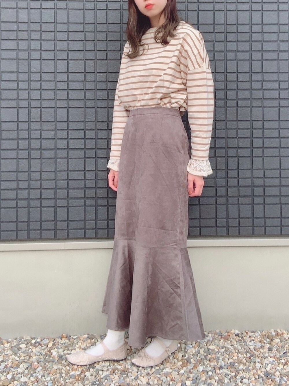 ✼••┈┈••✼••┈┈••✼••┈┈••✼••┈┈••✼ mermaidskirt ✼••┈┈••✼••┈┈••✼••┈┈••✼••┈┈••✼ ボーダートップスでカジュアルに✌🏻 袖からレースをチラ見せᯅ̈♡ マーメイドスカートがやっぱりかわいい🧜♀️🐠💕