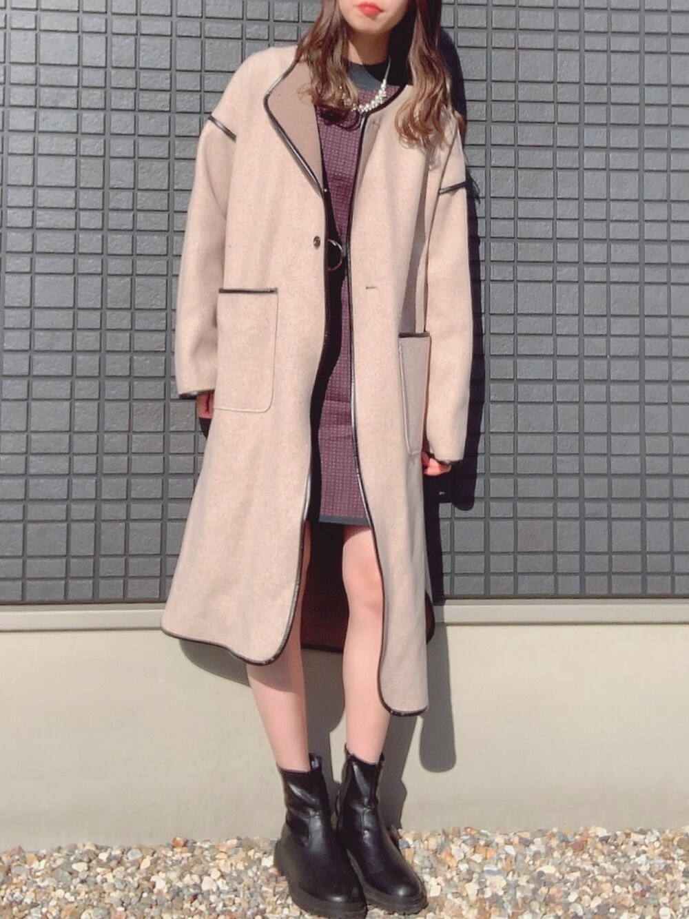 uichan❁⃘*.゚のワンピース「千鳥ジャガードニットミニワンピース」を使ったコーディネート