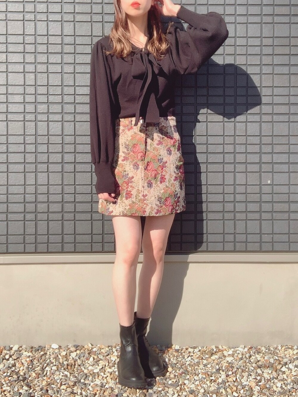 ✼••┈┈••✼••┈┈••✼••┈┈••✼••┈┈••✼ girlycode ✼••┈┈••✼••┈┈••✼••┈┈••✼••┈┈••✼ ボウタイつきニットにミニスカートで オトナ女子コーデ🐰💓 GRLで購入したニット袖がぽわんって しててとってもかわいい☺️ (2枚目のがわかりやすいかもᯅ̈) 肌触りもよきです!◎