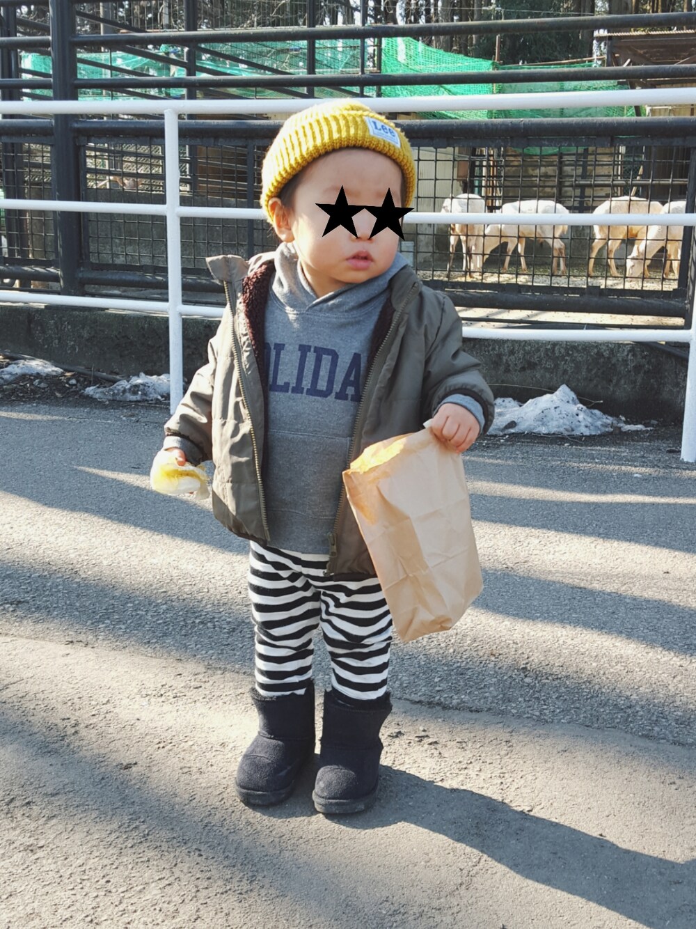 今日は晴れたので動物園へ。 右手にはエサのキャベツを大事に握ってます。