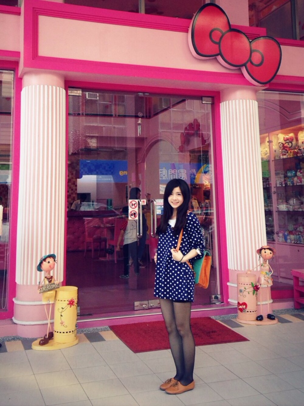 圓點點連身洋裝、搭上透膚絲襪,復古可愛呀❤️