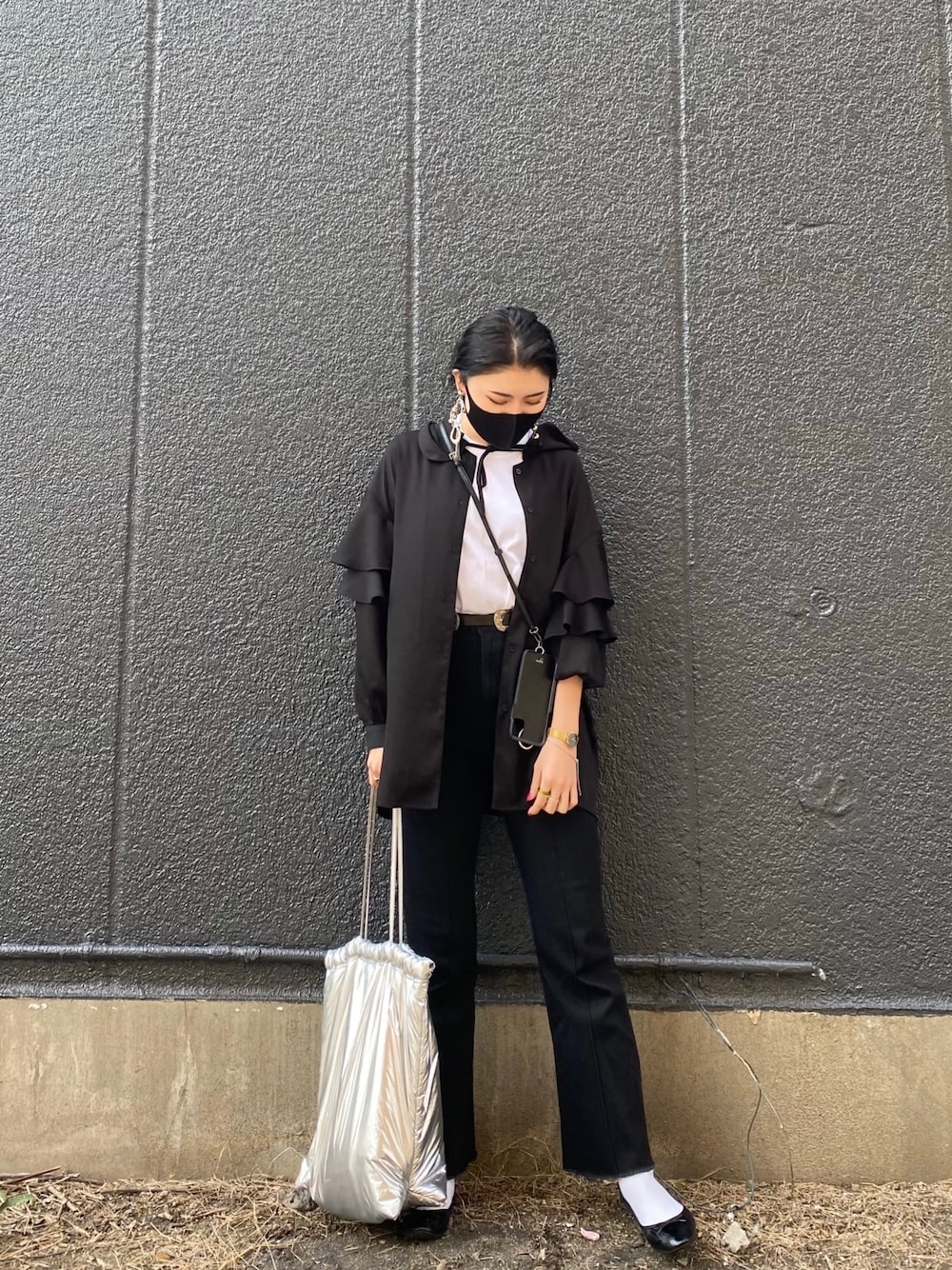 ブラウスは、春はもちろん今からの季節からでも着ていただけます🌸💞 今回はブラック合わせでカッコいいコーデですが、もう少し暖かくなってきたらカラー合わせしたいです💜💜