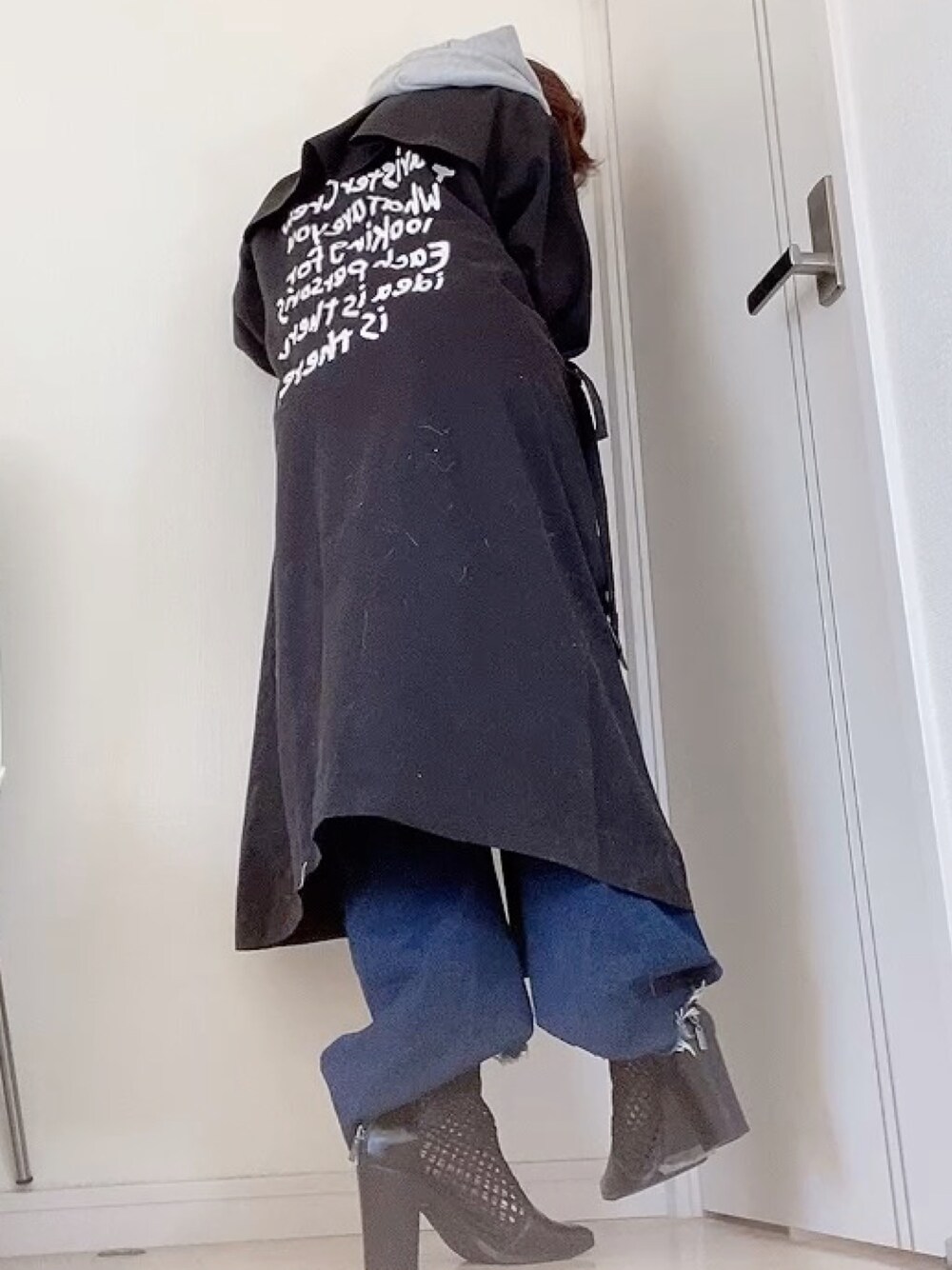 honey🍯のトレンチコート「バックグラフィックトレンチコート」を使ったコーディネート