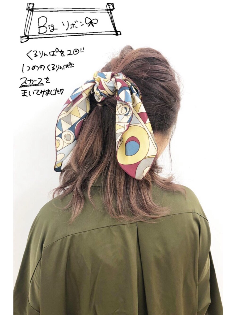 ハーフアップでくるリンパしてスカーフを結ぶだけ簡単アレンジ! スカーフ万能すぎー!