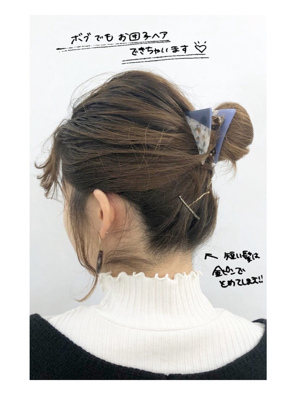 お団子率の高さ。笑 ウエイトの位置で雰囲気変えてます! まだボブで襟足の長さが足りない時は金ピンでランダムにとめると○