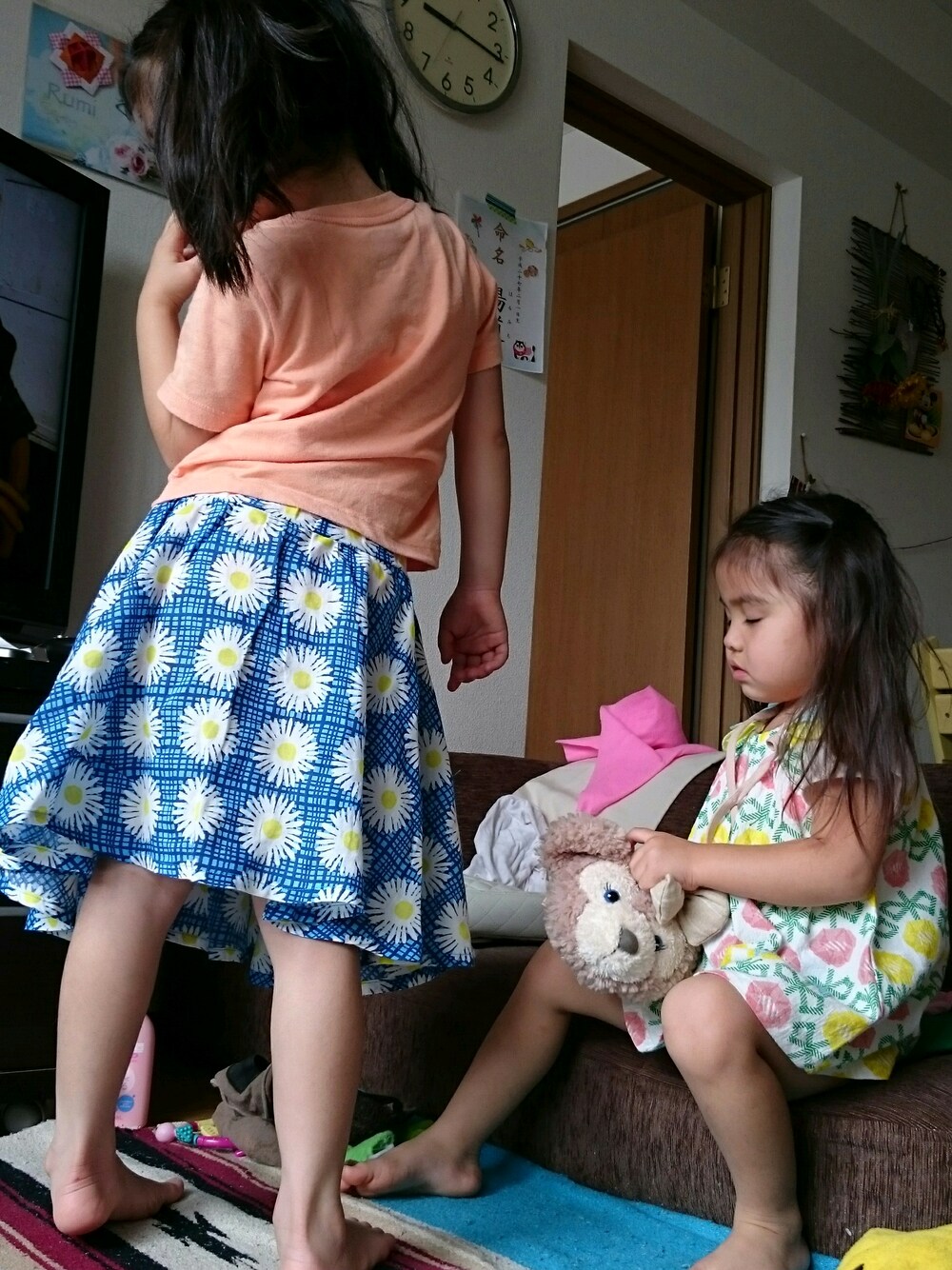 RuuもUruもツインテールにしました。 親友にプレゼントしてもらった服を着たくて着たくてたまらない2人。 ほんとに可愛い服をありがとう。 単品で主役級の服なのでシンプルにまとめました。