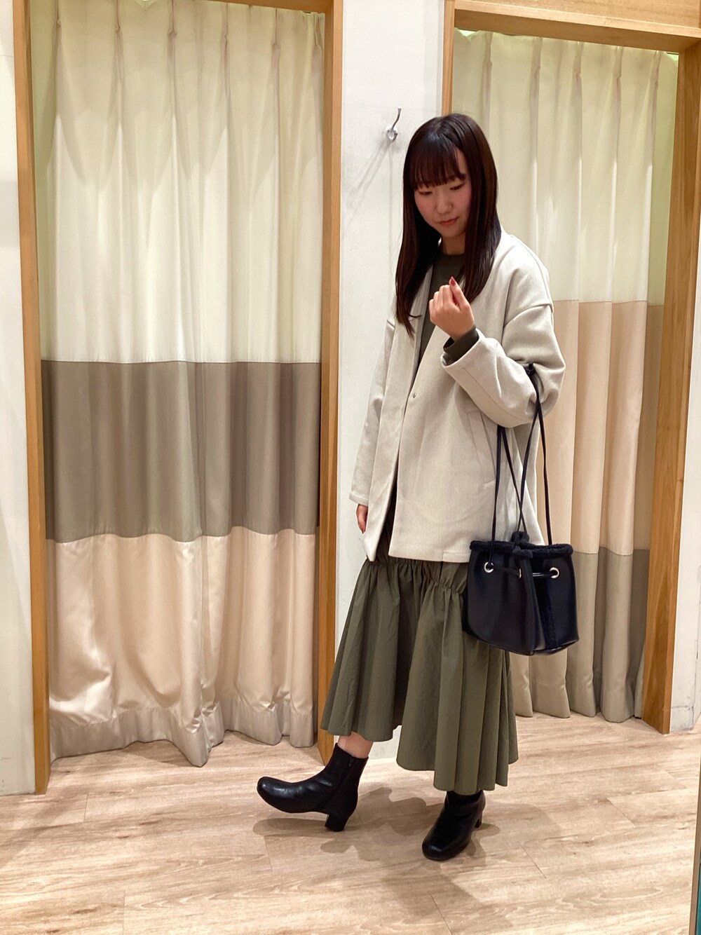 manaのワンピース「裏毛ドッキングワンピース」を使ったコーディネート
