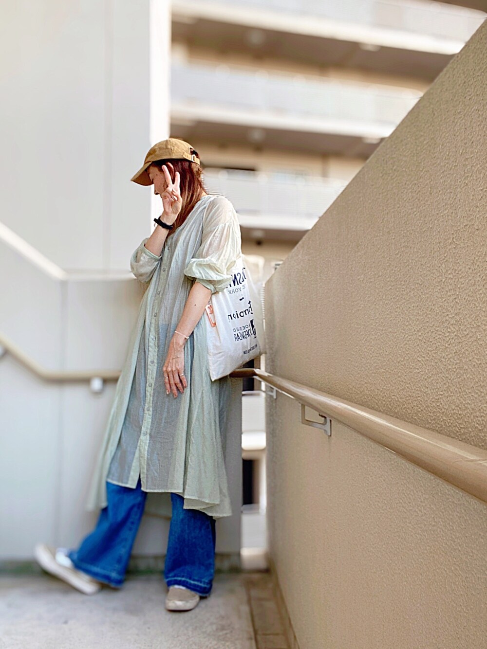 chan-miのシャツワンピース「シアーロングシャツワンピース」を使ったコーディネート