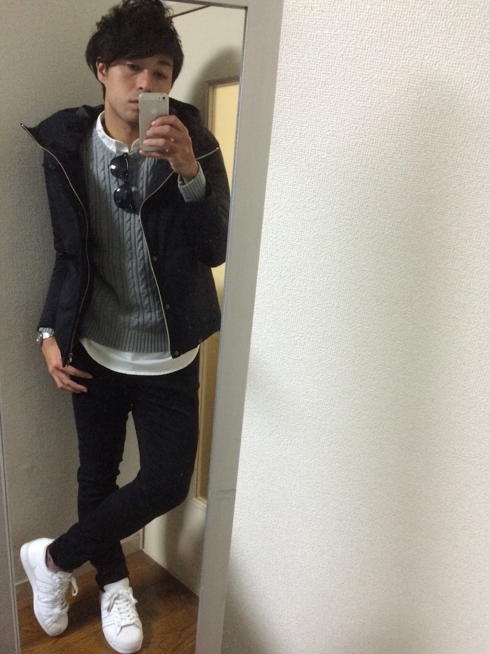 そばアレルギーからのそば好きへ。 こんにちは。chanmoです。 前コーデから1日空いちゃいましたので、遅くなりすみませんが、 まずみなさん、前コーデにもたくさんのいいね、save、コメントをいただいて本当にありがとうございます(^ω^) みなさんからレスポンス頂けて、最近うきうきして、にたにたして、へらへらしております( ̄▽ ̄) みなさんと仲良くしていきたいので今後ともよろしくお願いします(^ω^) さて、冒頭のそばなんですがー、 実は、僕は前コーデのテーマでもあったペペロン◯ーノの、まあ次くらいにそばが好きなんですねー どれくらい好きかというとー、だいたい週3くらいそばが食事に取り入れられてー、何軒か行きつけの蕎麦屋があるといえばあるかなーくらいです 特に、自分がちょっといいこだなっーて思い始めた女の子と初めてどっかいくーてなったときには、 ちょっと洒落た感じの蕎麦屋へ連れて行き、暖かい鴨せいろをすすりながら ー、相手のたわいもないお話肴にー、酒をたしなむなんてのがいいですねー。 ま、酒飲めないんですけどね。僕。 でも、そんな僕なんですが、幼少期は蕎麦食べたらじんましんがでる体質だったんですねー しかしながら、今やコンパとかで好きな食べ物なにー?とか聞かれるとー、 渋い表情で「最近は、お蕎麦かな」 と答えることになんとない快感を覚える日常ですねー。はい。 ペペロンどこいったねん。ペペロン。 一杯目からカシスオレンジ。 だから、初見の段階であーちょっと合わないかもなーて思った女の子でもー、 少しずつお話してるうちに、 「ん?この子もしかして、そばなんかな?」って思うこともかなりあるのかもしれないということですねー。はい。ええ。 てなわけで、今日のコーデのテーマは「最初から白黒つけるのはよくない」 です。 カーディガンにグレーを入れることでー、初見合わなそうだーなって女の子でも、少しでも自分が好きになれるとこないかなーって探したくなる自分のグレーな気持ちを表現しました。 よろしくお願いします( ̄▽ ̄)