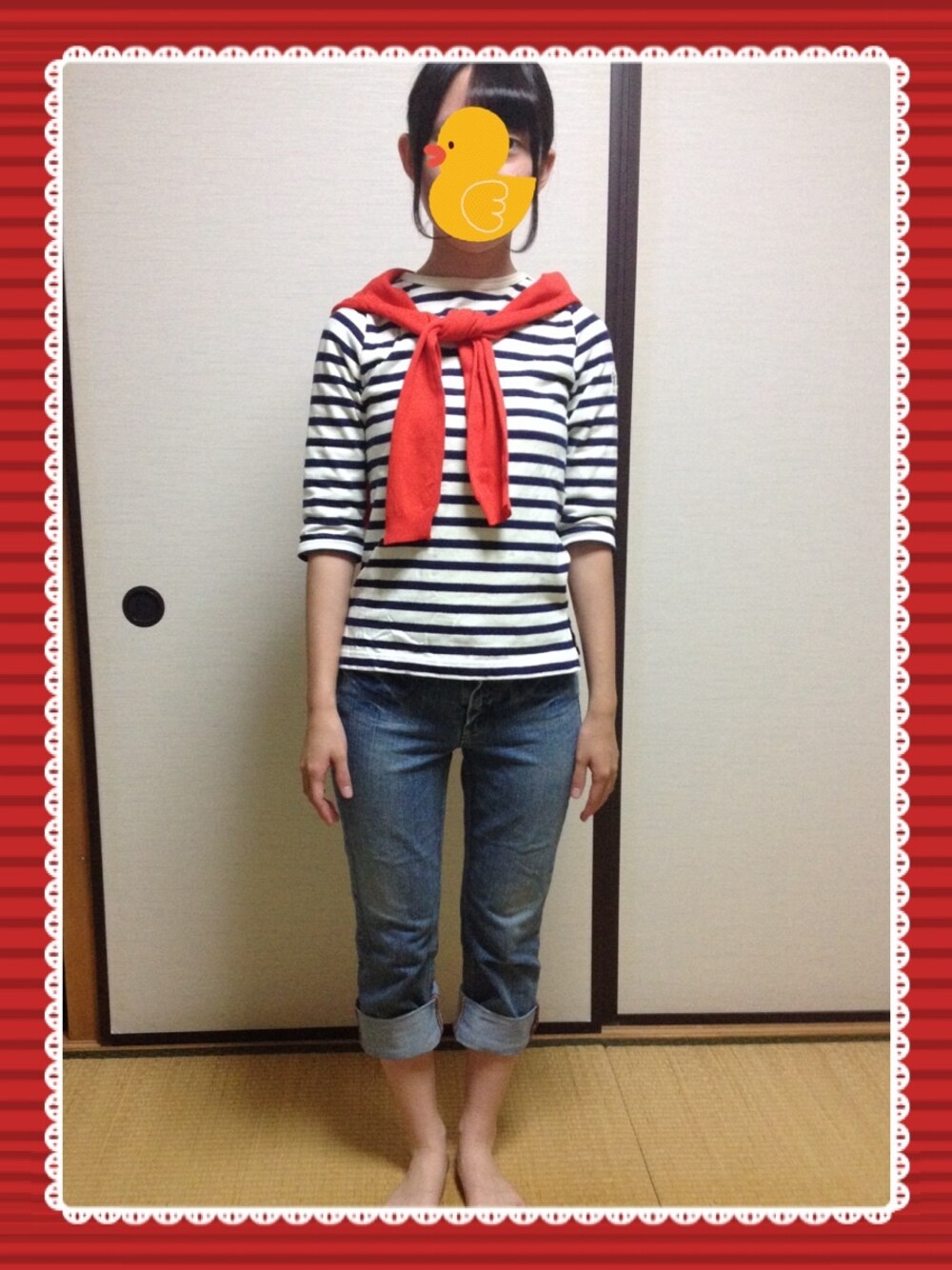 ボーダーでマリンテイストーヽ(^ω^)ノ 赤のカーディガンがポイントです✩ 海に行きたい勢いです!!!