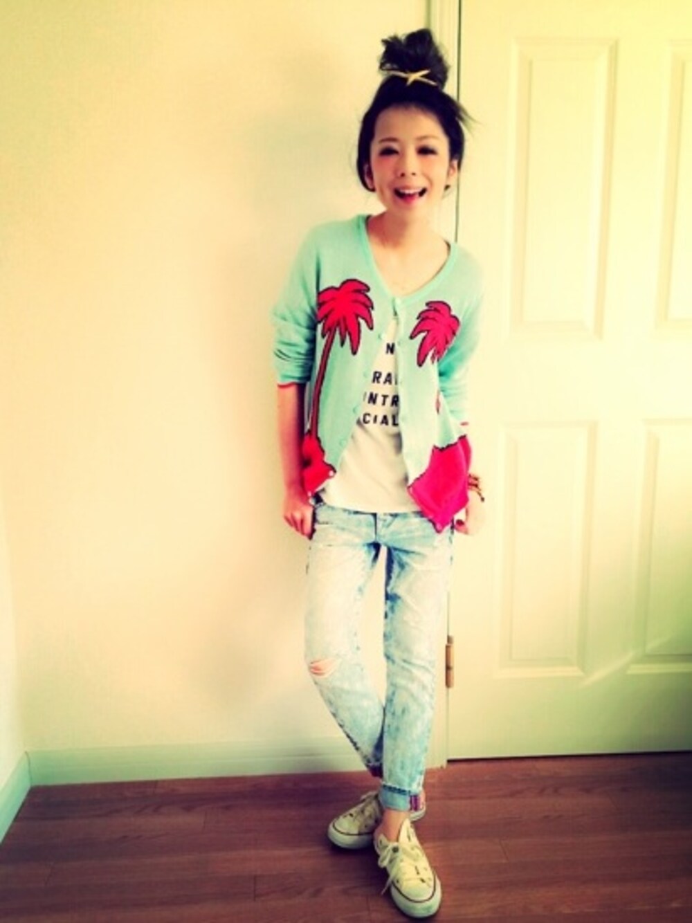 AkikoNakamuraのカーディガン/ボレロ「PARM TREE 7分袖 ニット カーディガン」を使ったコーディネート