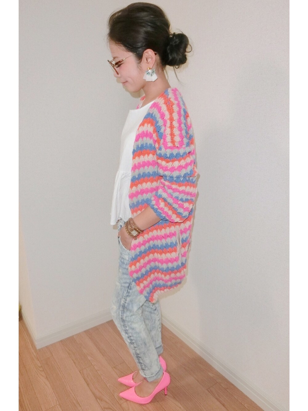 AkikoNakamuraのピアス(両耳用)「【Lady like】シフォンコンビビジューピアス」を使ったコーディネート