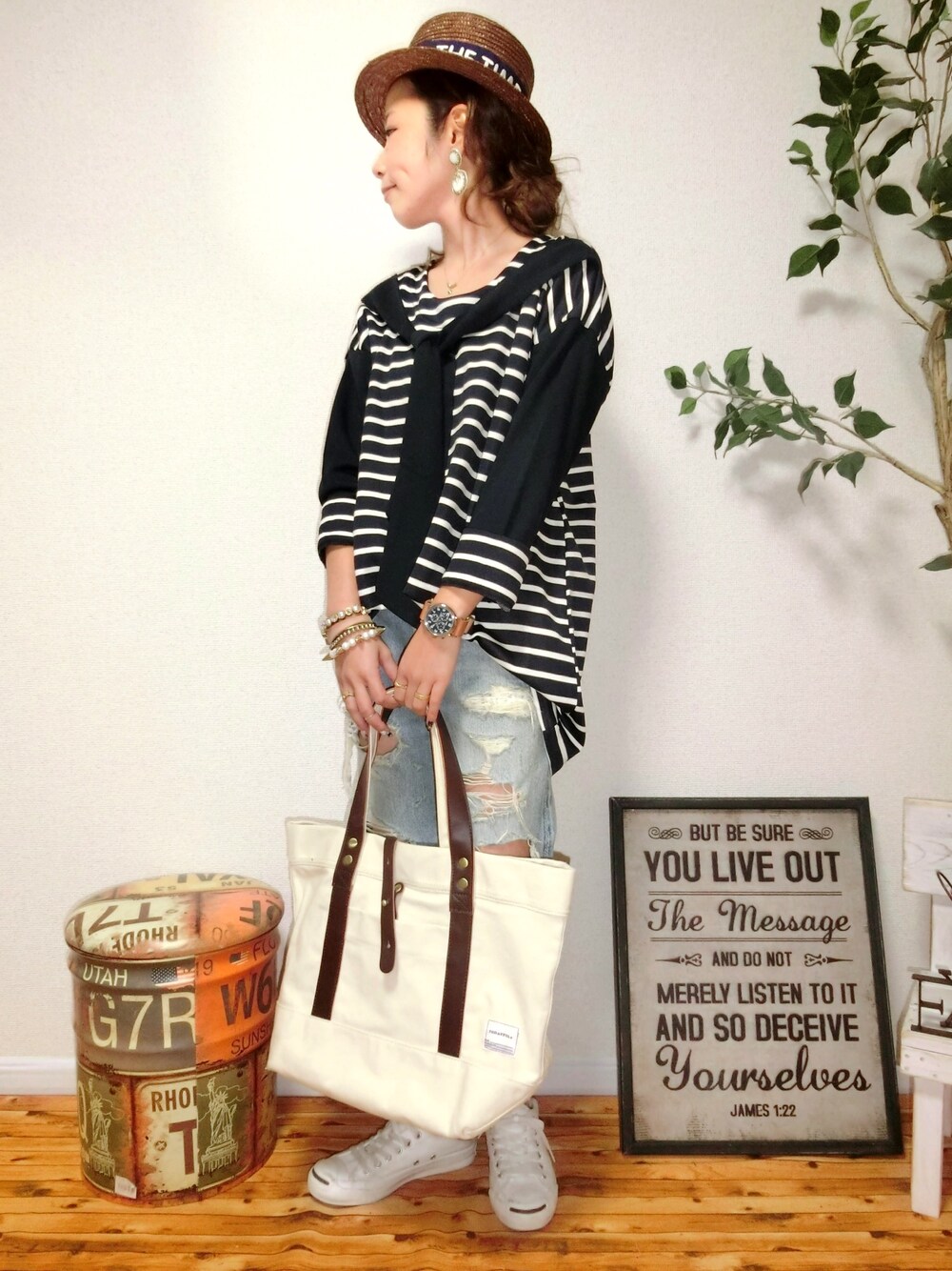 新作の肩掛け風ボーダーチュニック マリンな感じが好きー♡ EXSOME ONELINE http://exsome.jp