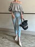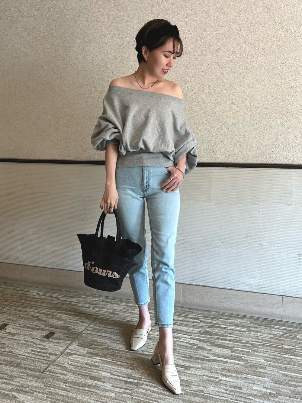 162cm・骨格ナチュラルが着るシンプルコーデ🩶 DHOLICの今季のオフショルスウェット可愛すぎる!🥺🩶 シンプルにデニムに合わせただけでもう可愛い。笑