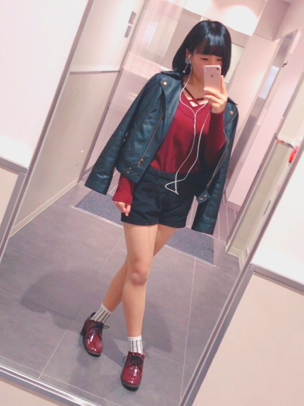 久しぶりの更新💬 今日は雨の日〜…☔💦 それでも、オシャレしてお出かけ( ・ㅂ・)و ̑̑ 初のライダース!!!! 丈も良くて、着やすい素材( ˶˙࿁˙˵ )ᐝ 昔と系統が変わって、大人っぽくなったかな? 靴は安定のWEGOさんで買ったものです💕 今の時期に合わせやすいワイン色〜! もっとファッションの勉強します💪 見てくれて、ありがとうございます😢🙌