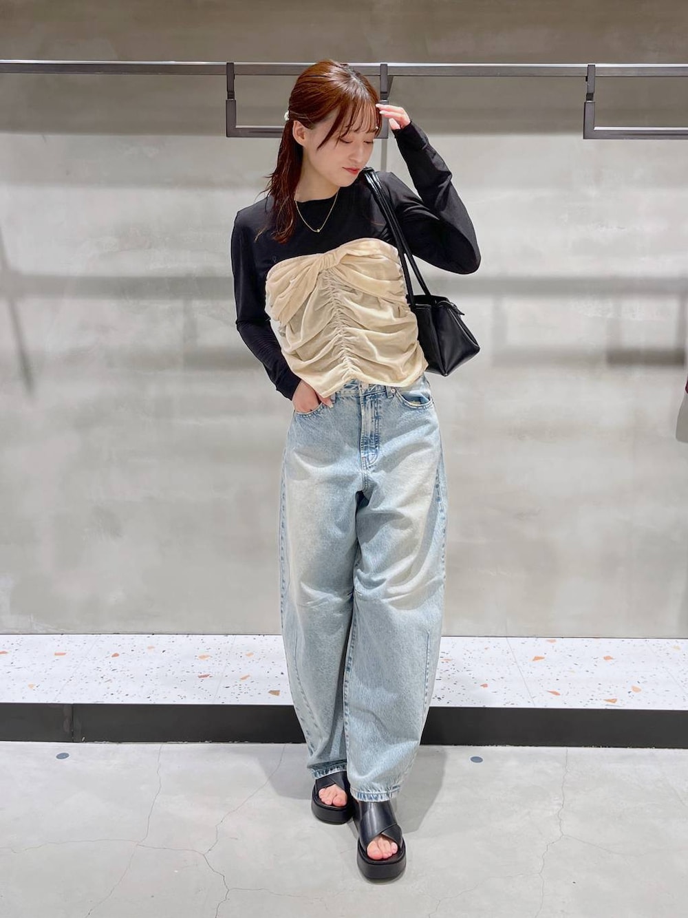 きれいめカジュアルコーデ 🩶 【シアーインナー】 FREEサイズ 伸縮性のある柔らか素材のシアートップス。 1枚でも、ワンピースやベストのインナーとしても 使えるのでコーデの幅が広がります✨ 【ビスチェ】 FREEサイズ 1枚で一気に秋っぽさを取り入れられるベロア生地の ビスチェ。肩紐無しですが、ゴムはきつくもなく ゆるくもなく程良い幅感で安心して着用頂けます♪ 【パンツ】 Mサイズ 丸みのあるルーズなシルエットが可愛い デニムパンツ。 柔らかい生地で履き心地も◎! 身長158cmでぺたんこギリギリ履けるくらいの 丈感でした^^