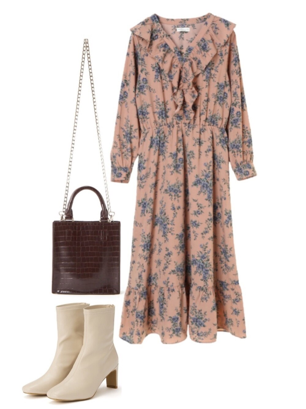 🌷閲覧ありがとうございます🌷 〜ガーリーコーデ〜 ✅ earth music&ecology / Premium Label フラワーラッフルワンピース ¥6,589 税込 ¥1,976 税込 70%OFF 大人かわいいワンピース👗💞 アイボリーのブーツで甘めにしてます🎶