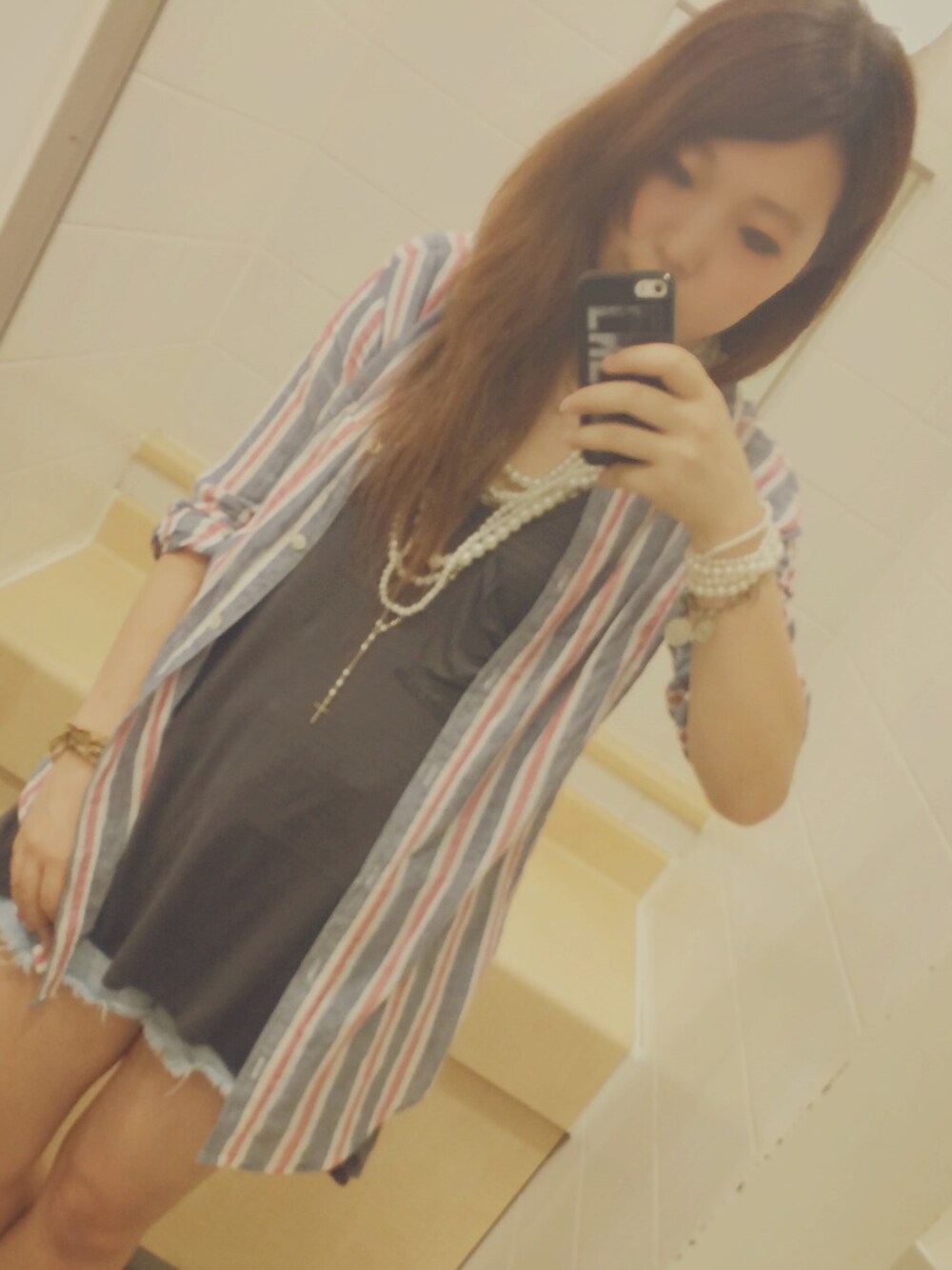 雨の日で寒くて(´・ε・`) けど、もーはおりものを全部 クリーニング出しちゃったから 震えながらこの服装してました꒰ ´͈ω`͈꒱