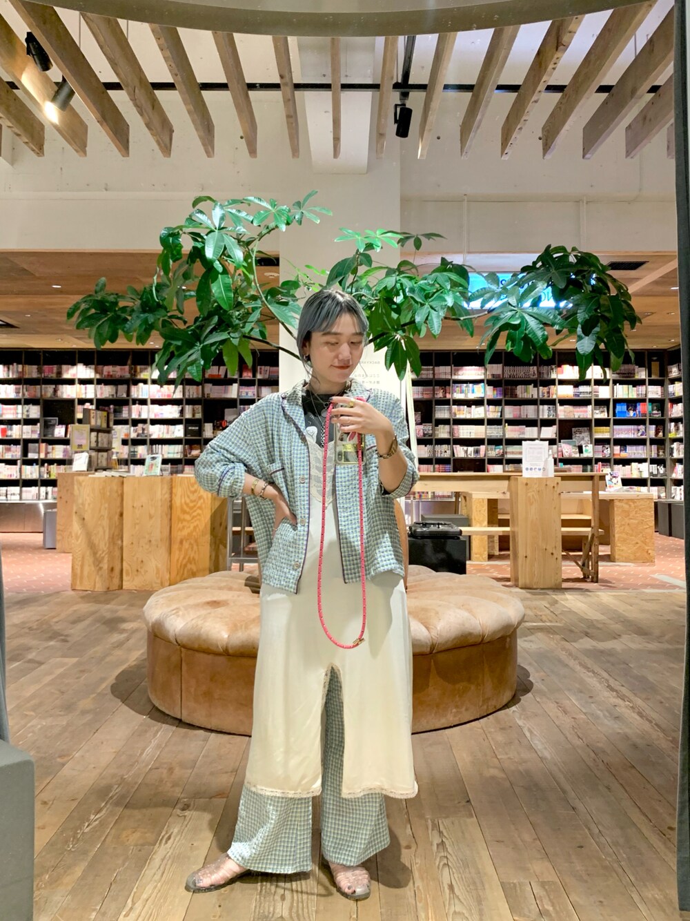 最近のオキニイリスタイリングは パジャマイッシュをセットアップで着て 寝にきた?てなるやつ インナーもほぼネグリジェやし 眠りにつく準備は万端で仕事してます。