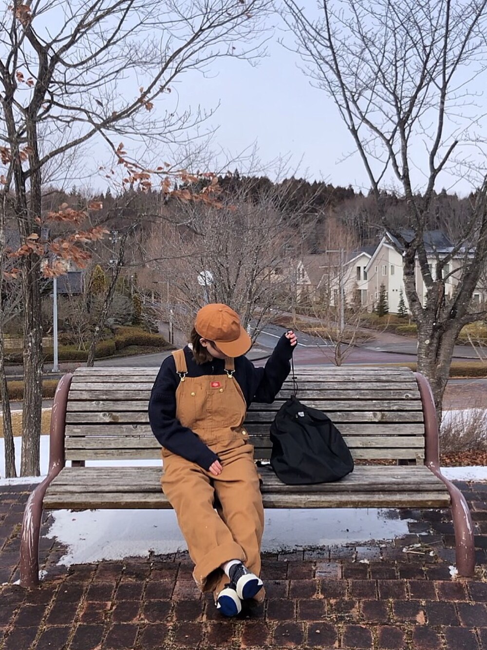ダック地のオーバーオール🦁 BATTLE LAKEのバックパックと Moonstarは、頂きものです🙏🏻 とても嬉しい🥺🧡