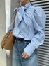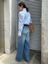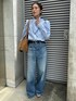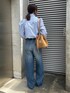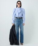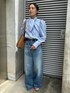 2025 PRE AUTUMN COLLECTION 爽やかなライトブルーのストライプ柄に大きめのボウタイが新鮮な"ガールスカウトブラウス" Chaosではデザインとしは新しい小さめの肩周りに、パプスリーブがセットインで付いた華奢でとってもフェミニンなブラウス。 デザインのポイントが顔周りに華やかにあるので、ブラウスが主役なスタイリングがお勧め。 ボトムにはスラックスをデニムに仕立てた様なデザインの腰回りがすっきりと見えるリバーランチデニムを合わせてカジュアルMIX。ブラウスはINして、ベルトを付けてメリハリのあるバランスにするのがスタイリングが上手くポイント。 ブルーの爽やかなワントーンの秋のスタイリングは、小物の素材感で秋気分を取り入てみて下さい。こっくりとしたキャメルの暖かなムートンバッグのコントラストがブルーと好相性です♡ □ ring : MARIA BLACK〜25'FW new □ bag : zanchetti ※coming soon