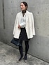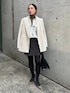 2025 FALL&WINTER COLLECTION 10月後半は、ホワイトやエクリュ、アイボリーを中心に冬の始まりを感じさせる、柔らかなトーンのラインナップが揃いました。 オーバーサイズのジャケットにミニスカートを合わせた、モードなバランスのスタイリング。 "チャメンオプサロンジャケット"は、天然の茶色をそのまま生かしたオーガニックコットンのコーデュロイ。 マスキュリンなムードがありながらも、どこかあたたかみを感じさせる一着です。上品なアイボリーが秋冬のスタイリングにさらりと羽織るだけでモダンさが漂います。 "リネーレリバーシリーズ"のミニスカートは、今季の新しいバランスを楽しめるアイテム。私自身もこの秋冬にトライしたいアイテムです♡ 表側がラクーン、裏側がコットンになったリネーレリバーは、 肌あたりが優しく、程良い厚みがアウターのインにも心地よく着ていただける素材感。獣毛が苦手な方にもおすすめです。 シリーズではセットアップでも展開しており、着回し力も抜群‼︎ ウォッシャブル可能なのでイージーケア出来る点も魅力です。 □ acc all : MARIA BLACK □ tights : SWDDISH STOCKINGS □ bag : HERMES vintage □ shoes : MANOLO BLAHNIK