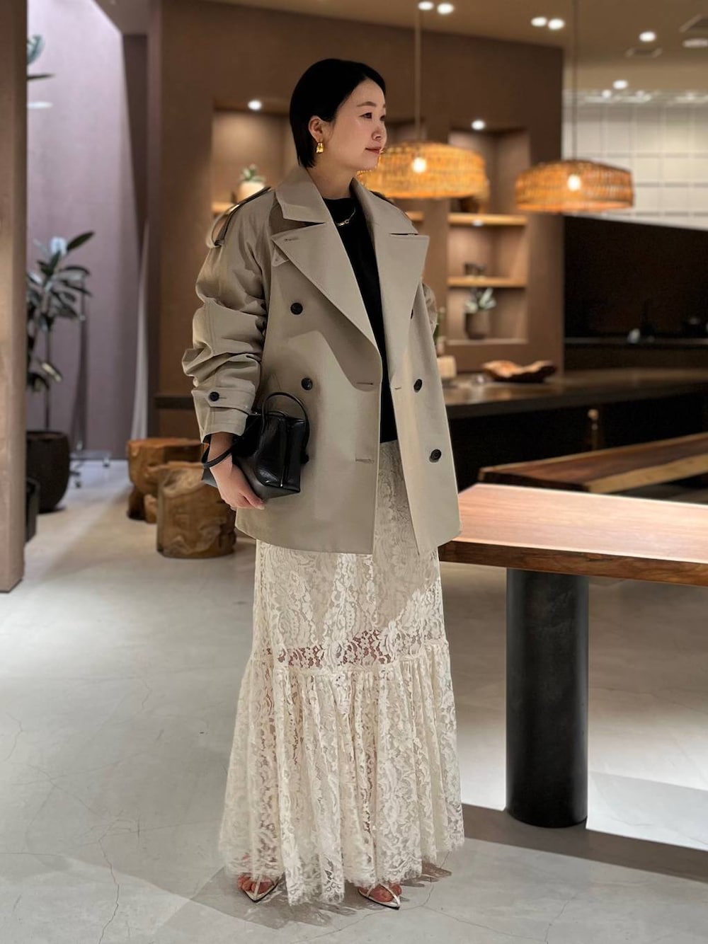 2026 SPRING COLLECTION🧥 程よいハリ感のあるトレンチジャケットに、繊細なレーススカートを合わせた上品なミックススタイル🦢 コンパクトな丈感のアウターはウエストマークすることでスタイルアップを叶えてくれます👏🏻 世界最高峰のリバーレースをふんだんに使用した、"ソワーズレーススカート"は華やかさとモードを兼ね備えたカオスらしいレーススカートとなっております! 軽やかに揺れるレースの質感が女性らしい抜け感を演出してくれますね♡ 春のあたたかさを思い浮かべながら、スタイリングを考えるのが今の楽しみです🌸 ぜひ店頭でも春のムードをお楽しみください! Instagramでもスタイリングを紹介しておりますので、 是非ご覧くださいませ☺︎ ⦅⦆