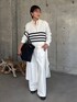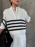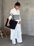 リムシャツワンピースを使ったレイヤードスタイリング🤍 程よいハリ感となめらかさのあるレーヨンナイロンのタイプライター素材で、コットンよりもシワになりずらいのが嬉しいポイント‼︎ ロング丈で、縦長のシルエットが自然と出るので、ホワイトでもスッキリとしたラインでスタイルUP効果絶大です◎ 一枚で着てもシンプルで素敵ですが、ショート丈のアイリーニットベストとの相性がベストマッチでとても可愛いです♡ こちらのベストを着る事でウエスト位置も高くみえてオススメです。 bag&shoes: Maison Margiela