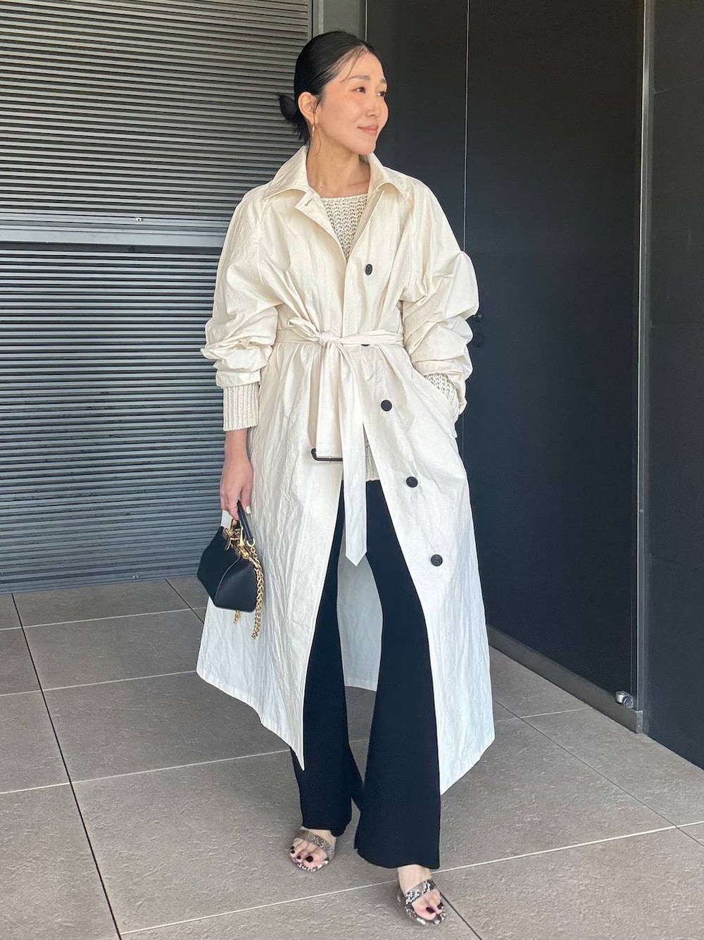 モード感のある大人の春style。 フォルムの美しいバルマカーンコートを主役にしたコーディネート。 ハリとコシのあるコットンナイロン素材が生み出す立体的なシルエットと、ウエストマークによるブラウジングがスタイリングに奥行きを生み、シンプルなインナーでも洗練された印象に仕上がります。 生成りの無染色カラーが、春らしい柔らかさと上品さをプラス。 インナーは軽やかなニットを合わせ、ボトムはブラックで引き締めることで、コートの美しいフォルムを際立たせたモードなスタイリングに仕上げました。 bag: ZANCHETTI shoes:PELLICO ♧Instagramでもスタイリングをご紹介しておりますので、よかったら覗いてみてくださいね☺︎