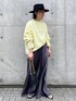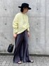 [もこもこ]と[つるつる]の素材を存分に楽しめるスタイリング。 ニットはポップになりすぎない色合いでダークカラーとの相性も抜群です。 肌当たりがもこもこふわふわで滑らかで、着用しているだけで幸福度が上がる逸品。保温性も高いのでニットを主役にしたスタイリングを沢山たのしめそう! ボトムは蕩けそうな光沢が見るものを惹きつける存在感。 ウールコートとの合わせた場合も各々の素材のバランスが美しく映りますね!